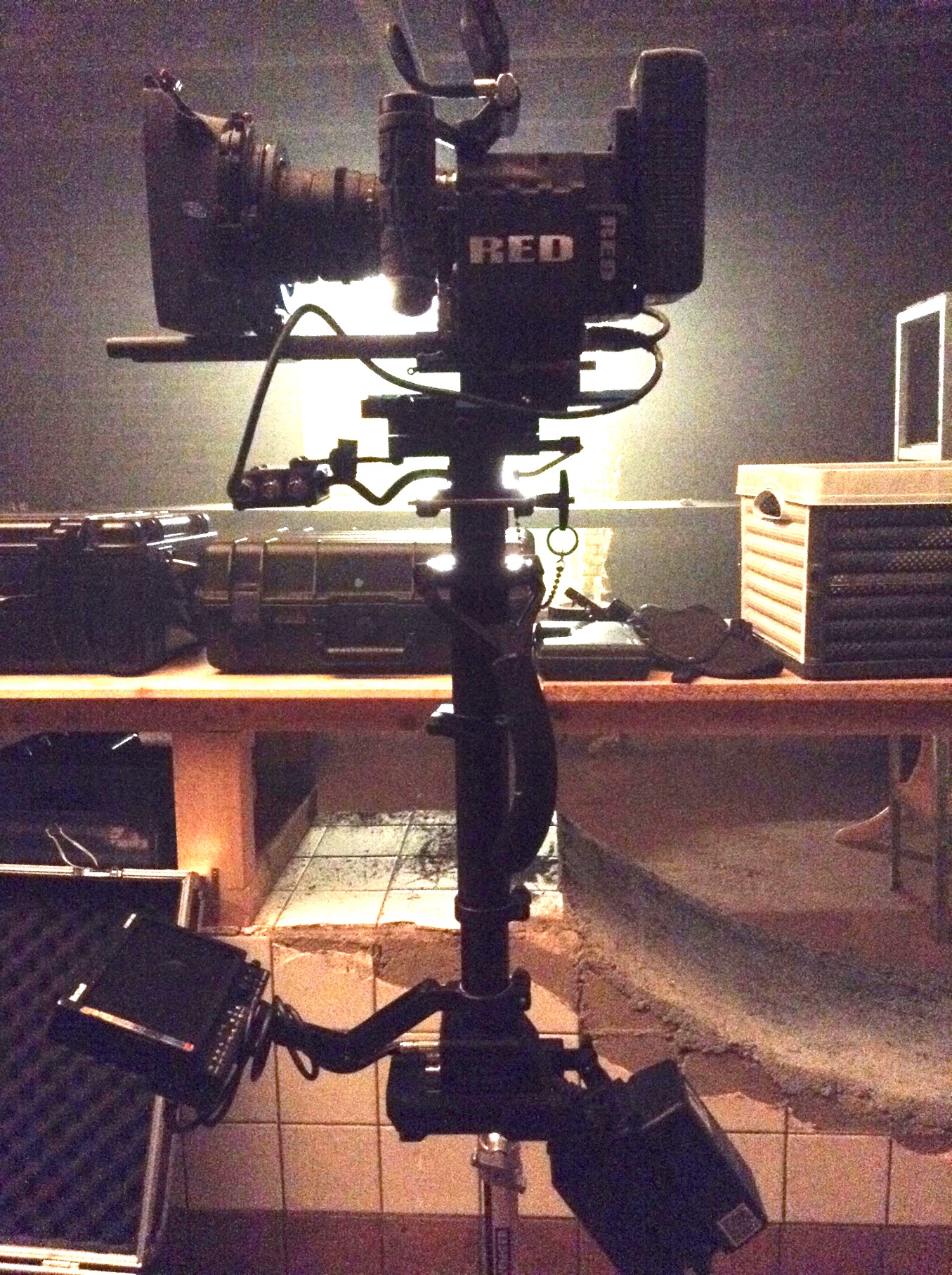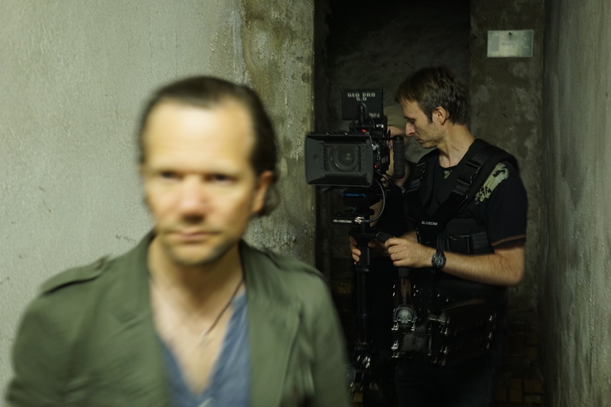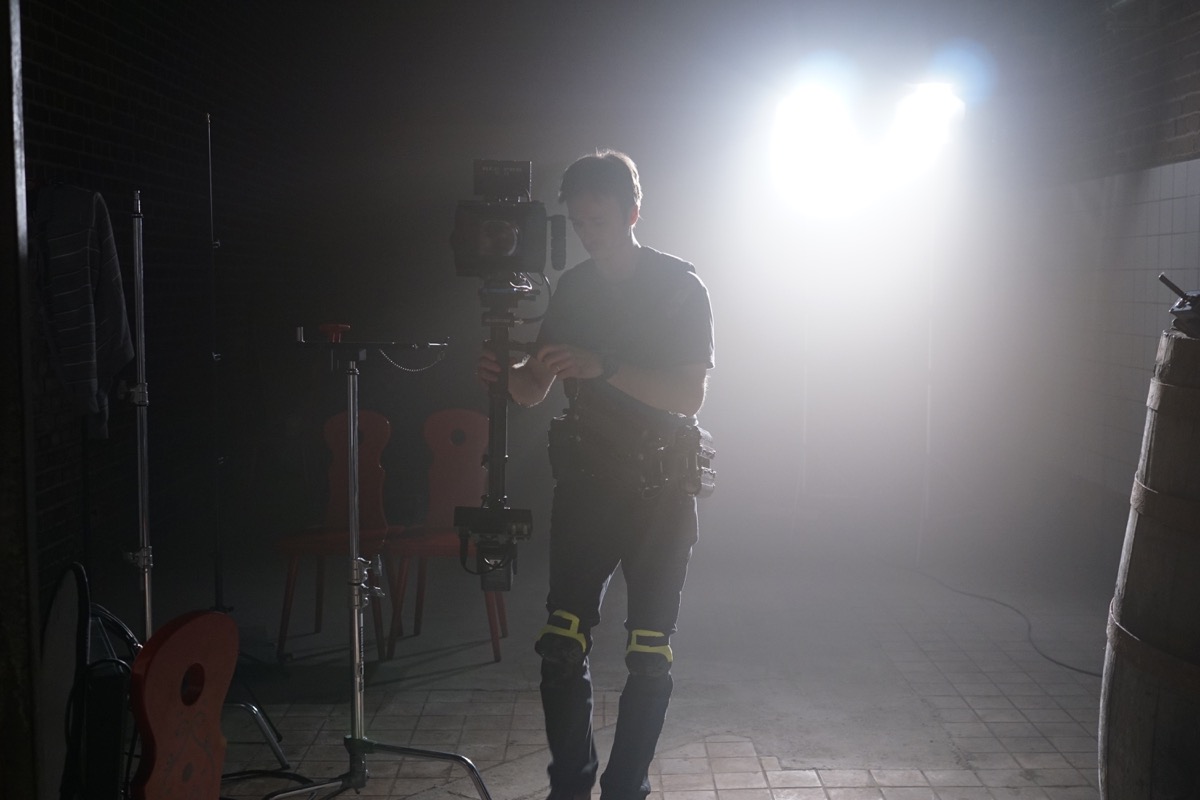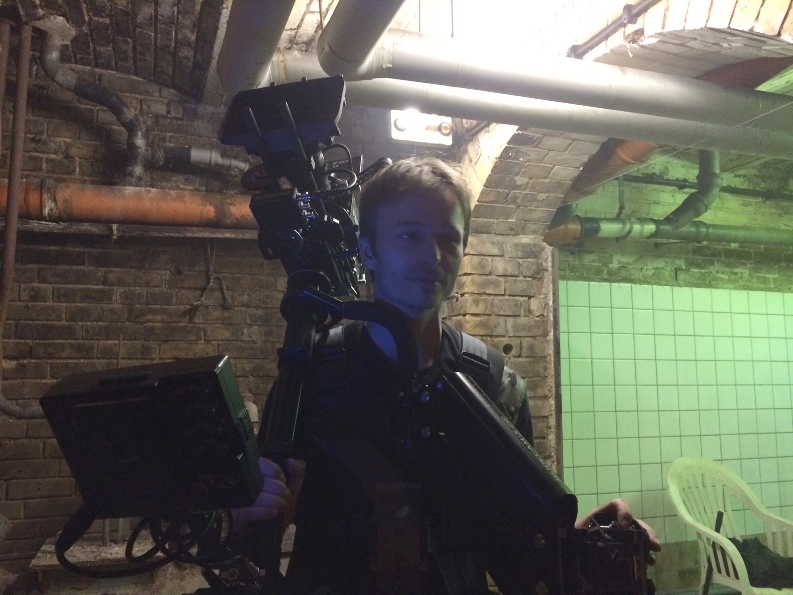 Für einen Kurzfilm habe ich im Keller einer alten Schnapsbrennerei in Leipzig einen langen Einsatz mit der Steadicam absolviert. Neben sehr langsamen und präzisen Fahrten beinhaltete der Auftrag auch, dem Schauspieler etwa 30 Meter durch teilweise sehr enge Gänge hinterherzurennen.